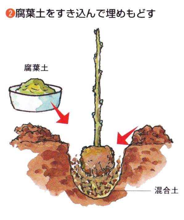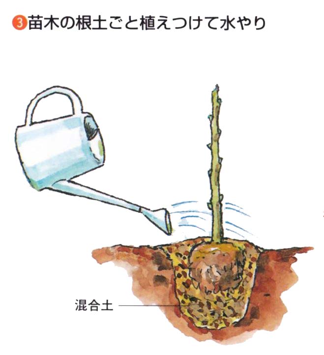 3月が適期です。さし木1〜2年生の苗木を入手して植えつけます。
