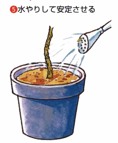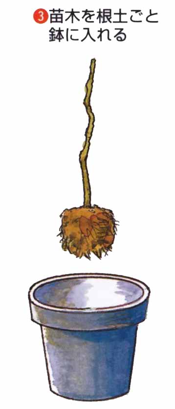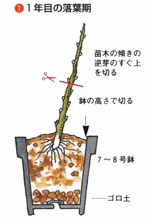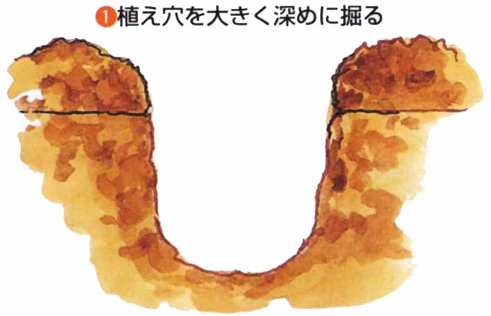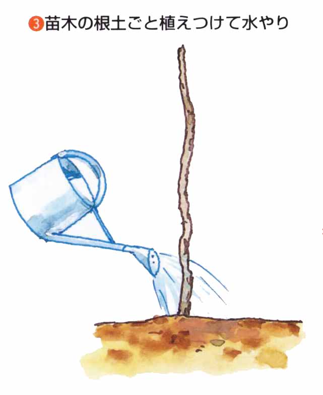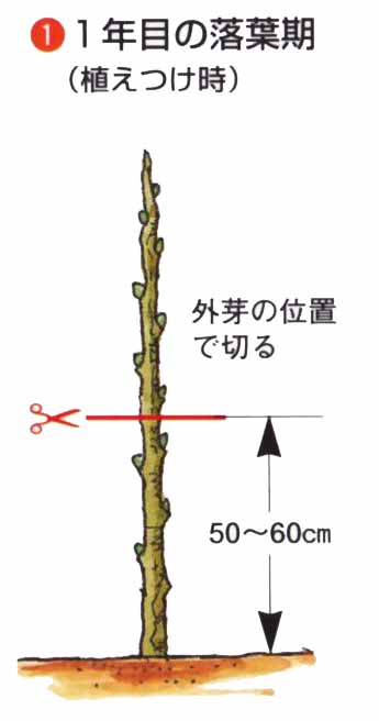11月中旬〜3月の落葉期が適期です。1〜2年生の接木苗を植えつけます。
