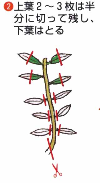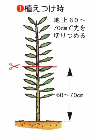 3月が適期です。植え付け時に、苗木の先を切りつめます。