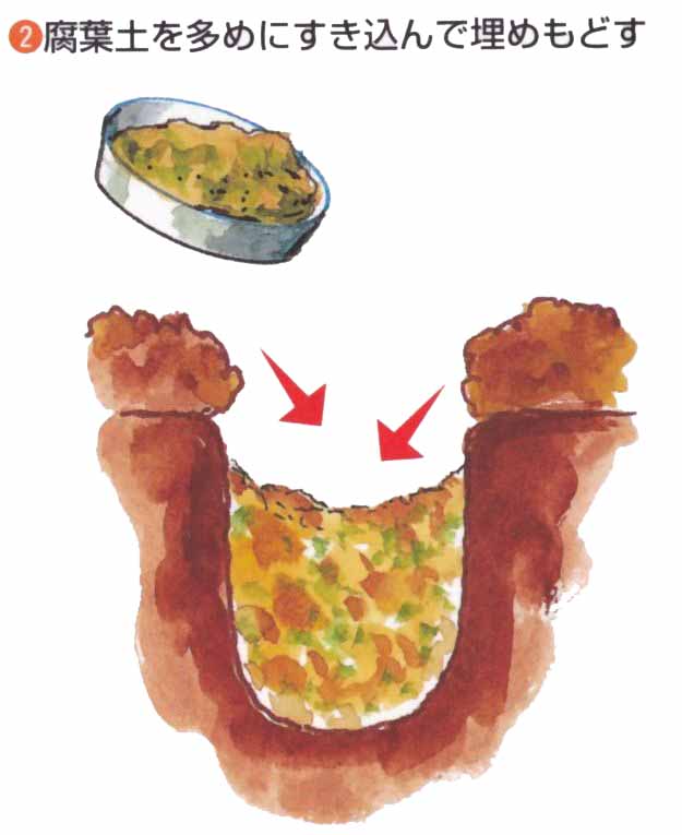 毎年3月に配合肥料を3〜4握り根回りにばらまき、軽くすき込みます。鉢植えは3月に、固形肥料を3〜4粒置肥します。