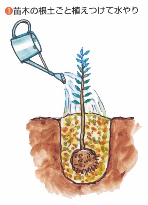 3月が適期です。常緑ですから、葉が付いている苗木を入手します。