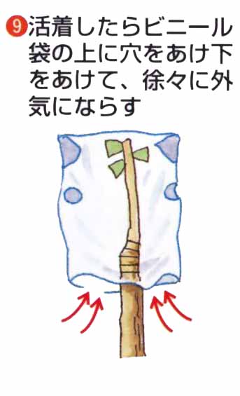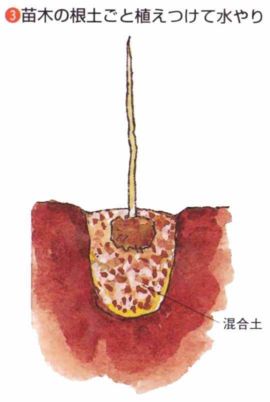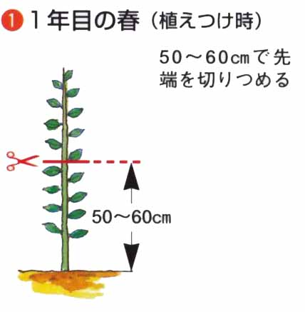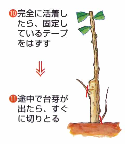 3月中旬〜4月中旬が適期です。つぎ木1〜2年生の苗木を入手します。