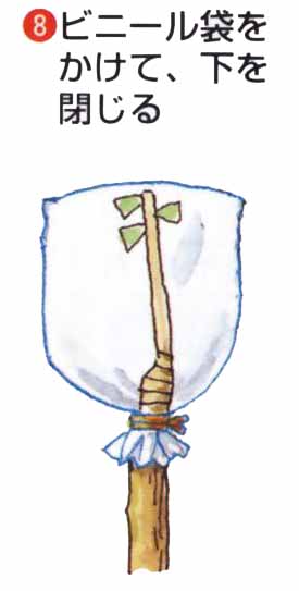 生理落果するので7月中旬ごろまで待って摘果します。残す目安は、葉40枚に1果の割合です。鉢植えはバランスよく3〜4果です。暖かい地方は必要ありませんが、年間平均気温が17℃を下回る地方では、袋をかけます。防寒と回青防止に効果があります。