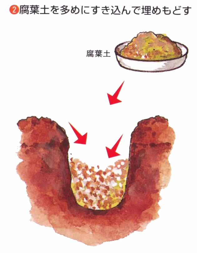 3月、6〜7月、9月の年3回にわけて与え、肥料切れを防ぎます。3月の寒肥は、根回りに溝を掘り配合肥料を200〜300g埋めます。他の時期は、寒肥の半量を目安にします。鉢植えは、固形肥料を3月に4〜5粒置肥します。