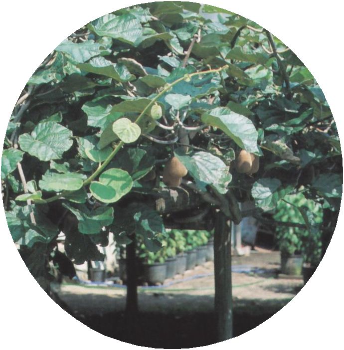 雌雄果株で、雌株だけでは結実しません。必ず両株を育てます。棚面5uで100〜120果、鉢植えで7〜8果が収穫の目安です。他は摘蕾、摘果します。キウイは結実すると初期の発育が早く、摘蕾しないと、果樹本体が弱ってしまいます。